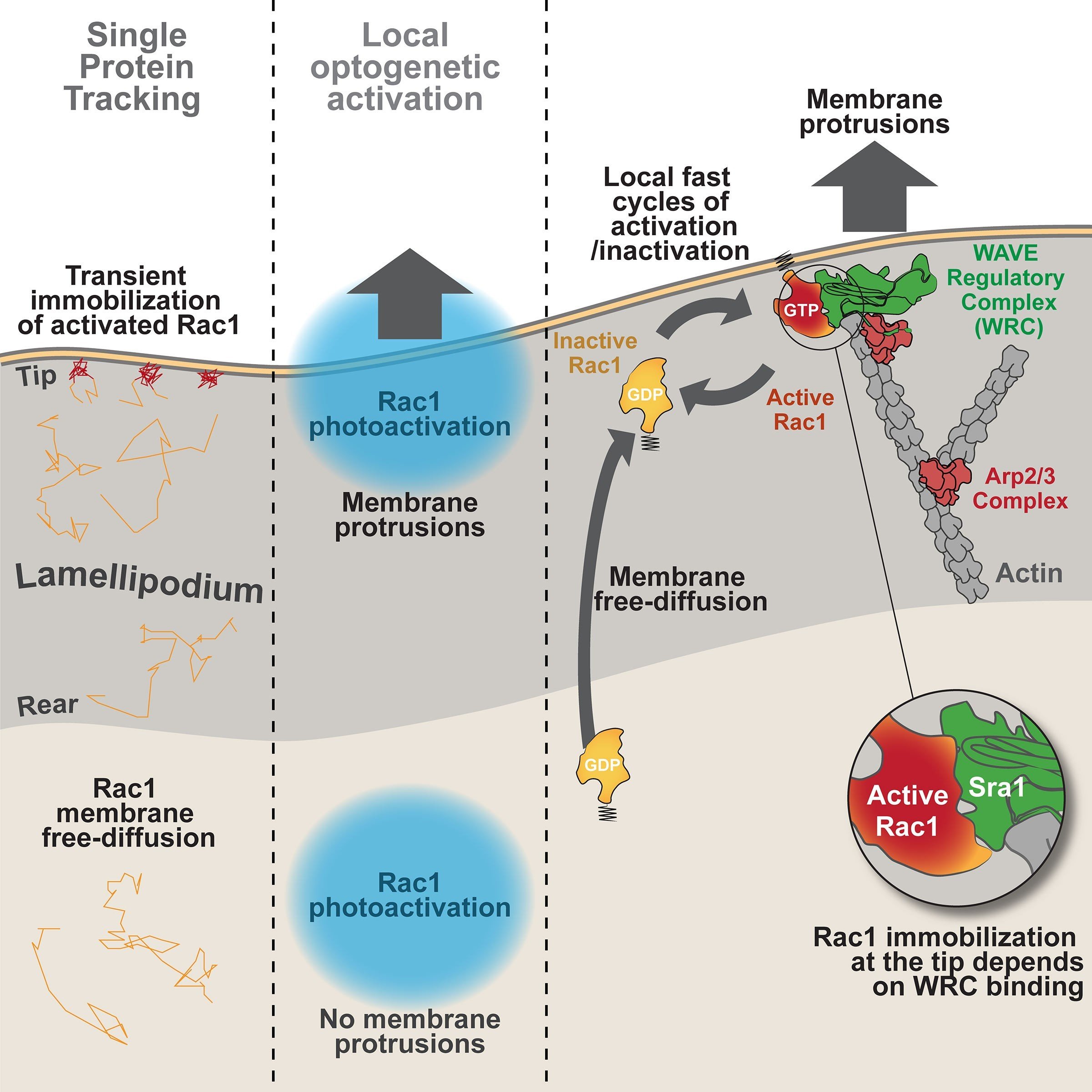 Transient Activations of Rac1 at the Lamellipodium Tip Trigger Membrane Protrusion ; Amine Mehidi, Olivier Rossier, Matthias Schaks, Anaël Chazeau, Fabien Biname, Amanda Remorino, Mathieu Coppey, Zeynep Karatas, Jean-Baptiste Sibarita, Klemens Rottner, Violaine Moreau, Grégory Giannone. Current Biology, Volume 29, ISSUE 17, P2852-2866.e5, September 09, 2019