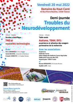 Dans le cadre du congrès scientifique “Neurodev : (Les Troubles du Neurodéveloppement : des mécanismes moléculaires à l’inclusion sociale)” du 18 au 20 mai.