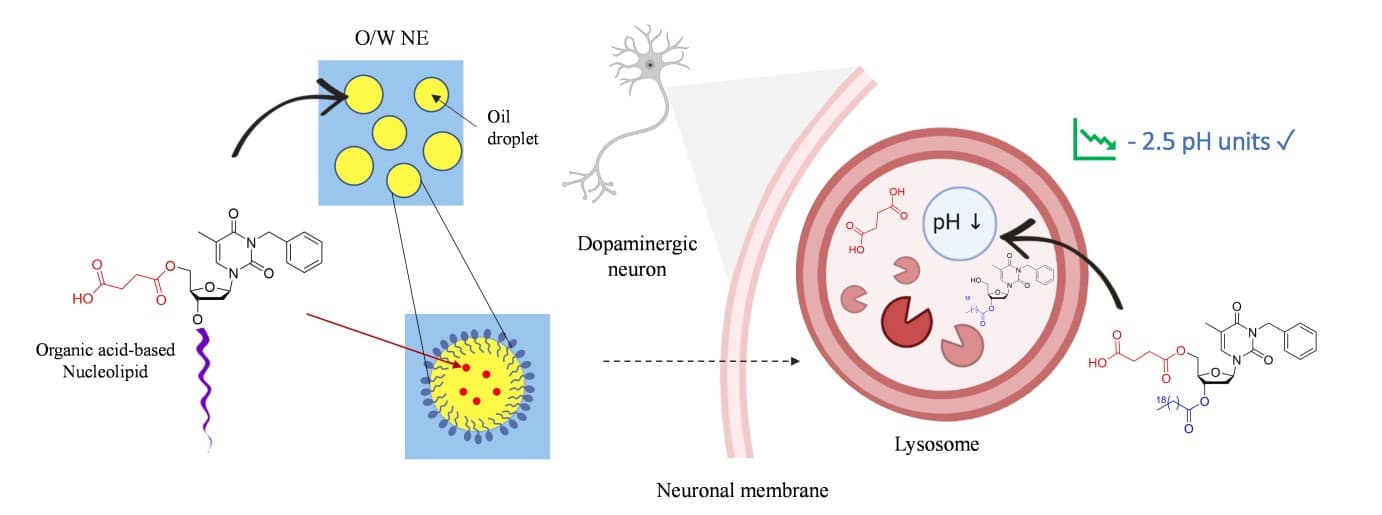 Les évaluations biologiques sur un modèle cellulaire génétique de la maladie de Parkinson ont mis en évidence la non-toxicité de ces vecteurs après internalisation cellulaire et leur capacité à restaurer complètement l’activité lysosomale. Résultats à retrouver dans la revue Frontiers in Chemistry.