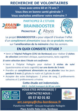 – Venir à l’hôpital Pellegrin pour réaliser 3 visites de suivi (questionnaires et tests cognitifs) sur une durée de 3 mois