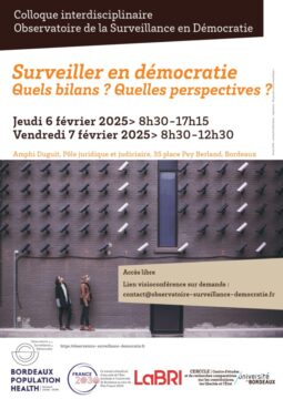 L’Observatoire de la surveillance en démocratie réunit des chercheurs de différentes disciplines (droit, informatique, philosophie, santé publique et sciences politiques). Créé en 2023 par le CERCCLE, Bordeaux Population Heath et le LaBRI, il vous convie au colloque interdisciplinaire « Surveiller en démocratie. Quels bilans ? Quelles perspectives ? ». Cet évènement aura lieu les 6 et 7 février 2025 à l’amphithéâtre Léon Duguit – Université de Bordeaux – 35 place Pey Berland – Bordeaux.