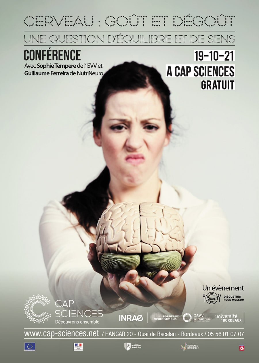Conférence proposée par Cap Sciences en partenariat avec NutriNeuro, Bordeaux Neurocampus, ISVV, Université de Bordeaux, INRAE, dans le cadre de l’exposition « Disgusting Food Museum » présentée à Cap Sciences jusqu’au 2 janvier 2022.