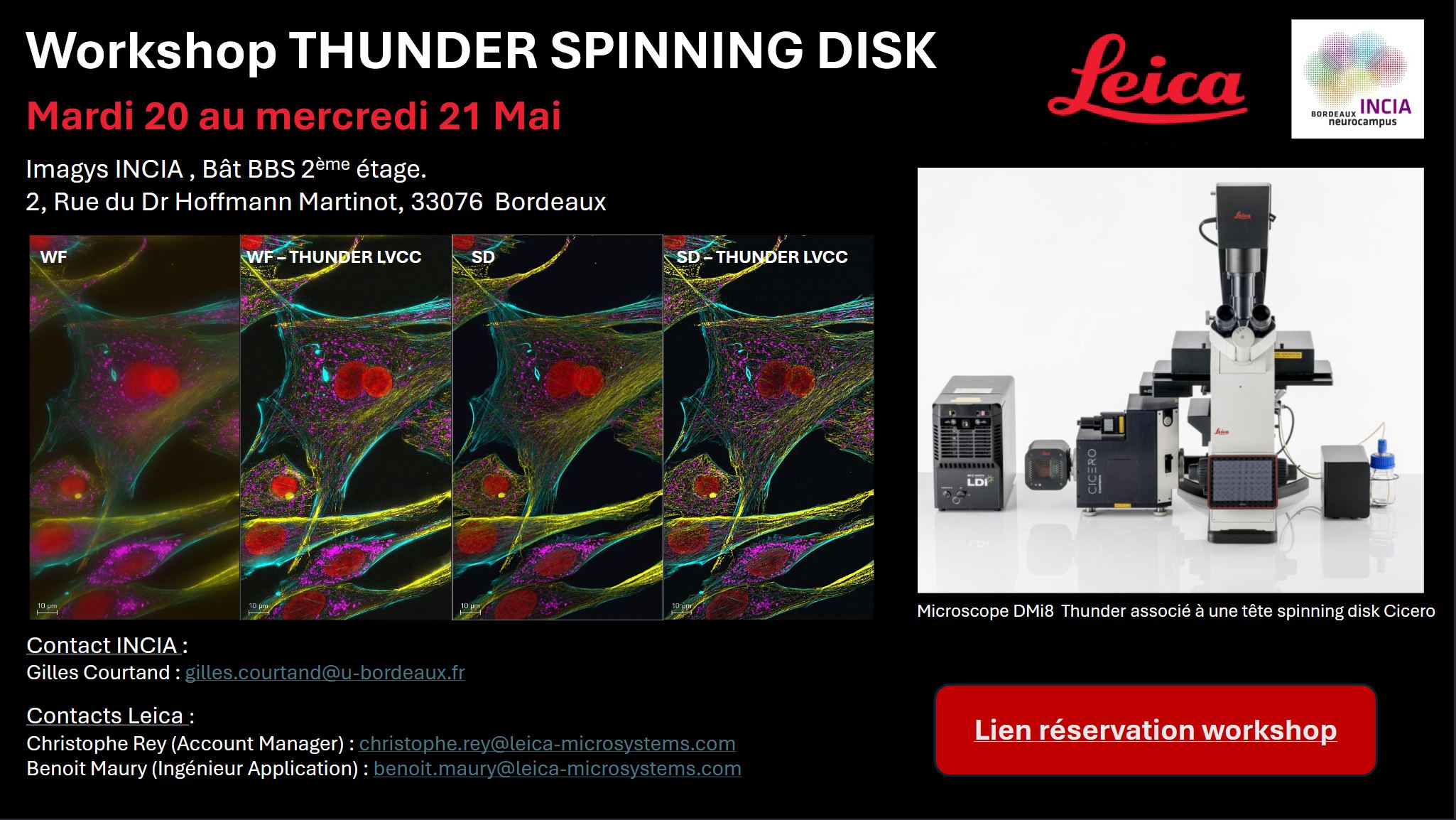 La société Leica fera une démonstration les 20 et 21 mai d’un microscope équipé d’un spinning disk.