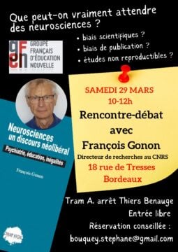 « Que peut-on vraiment attendre des neurosciences ? » avec François Gonon, directeur de recherche à l’IMN et autour du livre Neurosciences : un discours néolibéral ?