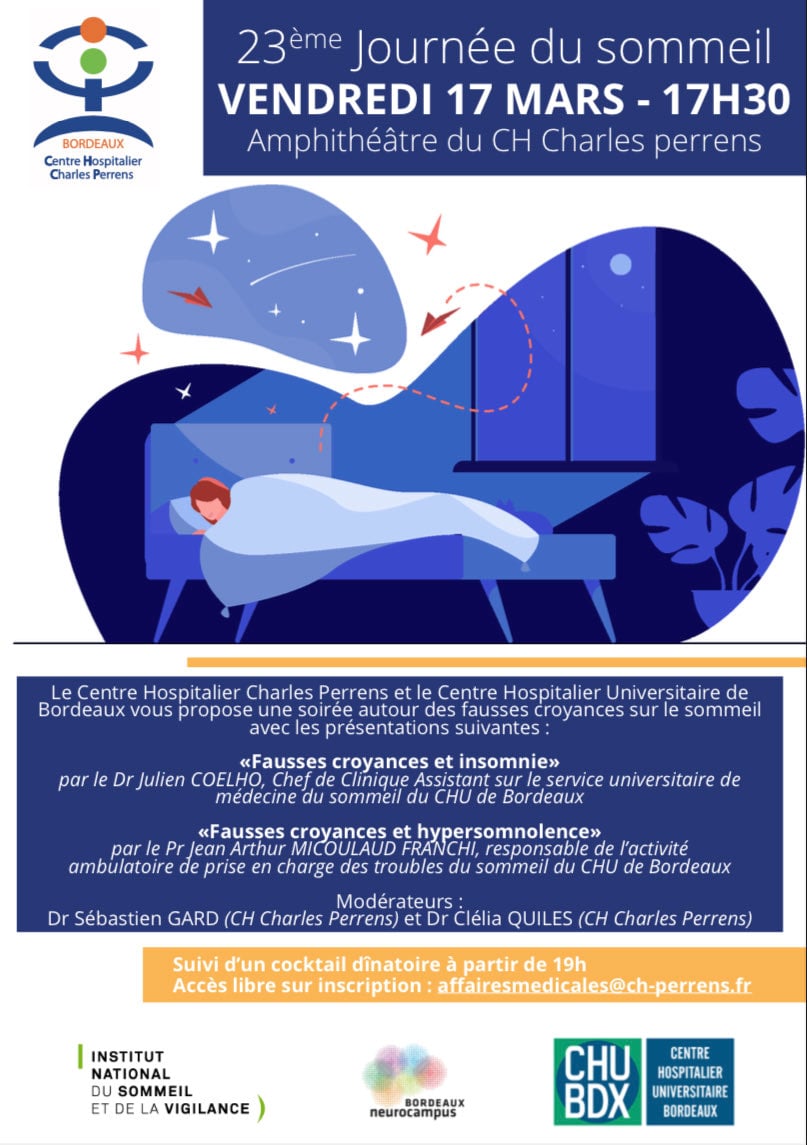 Le Centre hospitalier Charles Perrens et le Centre hospitalier universaire de Bordeaux propose une soirée autour des fausses croyantes sur le sommeil avec deux présentations :