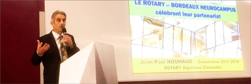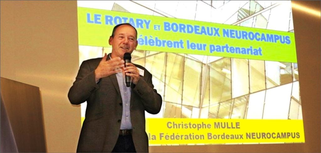 Depuis une dizaine d’années, le District Rotary Aquitaine Charentes aide Bordeaux Neurocampus en collectant des fonds pour aider la recherche sur le cerveau sous forme de subventions ou de bourses pour les chercheurs.