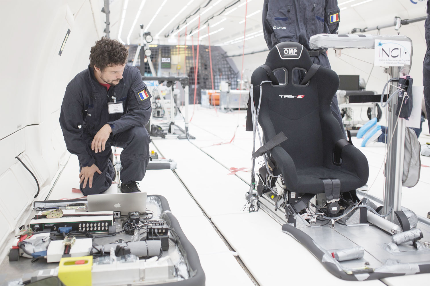 Les vols paraboliques sont effectués à bord d’un Airbus A310 pour les vols Air Zero G, qui suit un profil de vol alternant des manœuvres de montées et de descentes espacées de paliers. Ces paraboles, permettent chacune d’obtenir jusqu’à 22 secondes d’apesanteur. Pendant chacune d’elles, les objets et les personnes à bord ne ressentent plus la gravité, et peuvent flotter librement dans la cabine de l’avion.