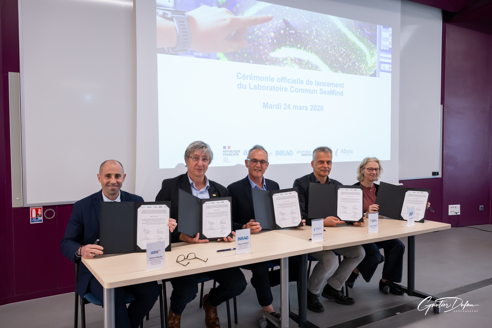 Les troubles cognitifs peuvent survenir tout au long de la vie et peuvent se manifester par des troubles de la mémoire et de l’humeur. Le laboratoire commun (LabCom) SeaMind entre le laboratoire NutriNeuro (INRAE, université de Bordeaux, Bordeaux INP) et la société Abyss Ingredients vise à prévenir et corriger les troubles cognitifs tout au long de la vie à travers des solutions alimentaires innovantes et bio-sourcées. Financé par l’Agence nationale de la recherche (ANR) à hauteur de 363 k€ sur 54 mois, il a été inauguré le mardi 24 mars 2026 à Bordeaux.