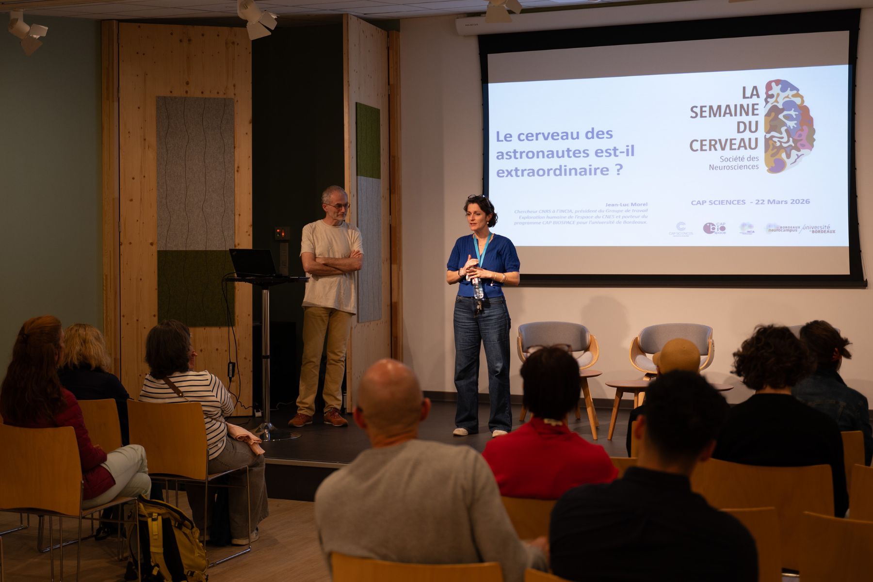 Pour cette édition 2026, de nouveaux partenaires ont permis d’élargir la diversité des sujets abordés : le don du cerveau avec France Parkinson, AVC et démence avec l’institut VBHI, traitements pour Alzheimer avec l’ERENA, le cerveau des astronautes avec CAP BIOSPACE et surtout la santé mentale, thème cette année de la Fabrique du Citoyen, organisée par les bibliothèques de Bordeaux. Si quatre rendez-vous étaient co-organisés dans ce cadre avec Bordeaux Neurocampus, d’autres moments ont enrichi la programmation, notamment deux projections de film et des rencontres avec les psychiatres Serge Tisseron ou Mathieu Belhassen.