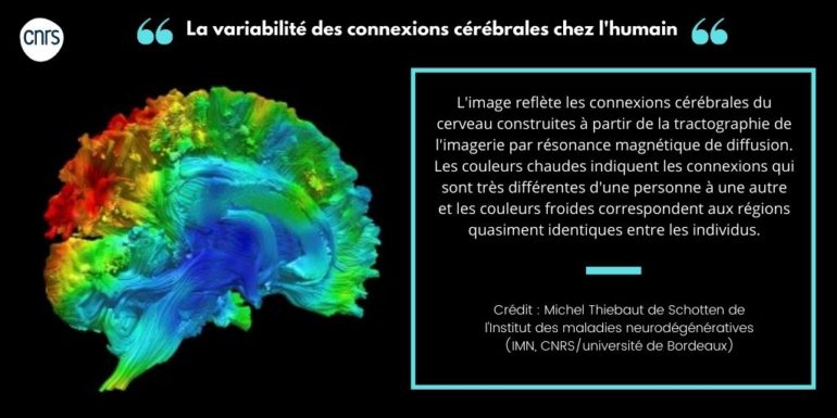 L’image reflète les connexions cérébrales du cerveau construites à partir de la tractographie de l’imagerie par résonance magnétique de diffusion.